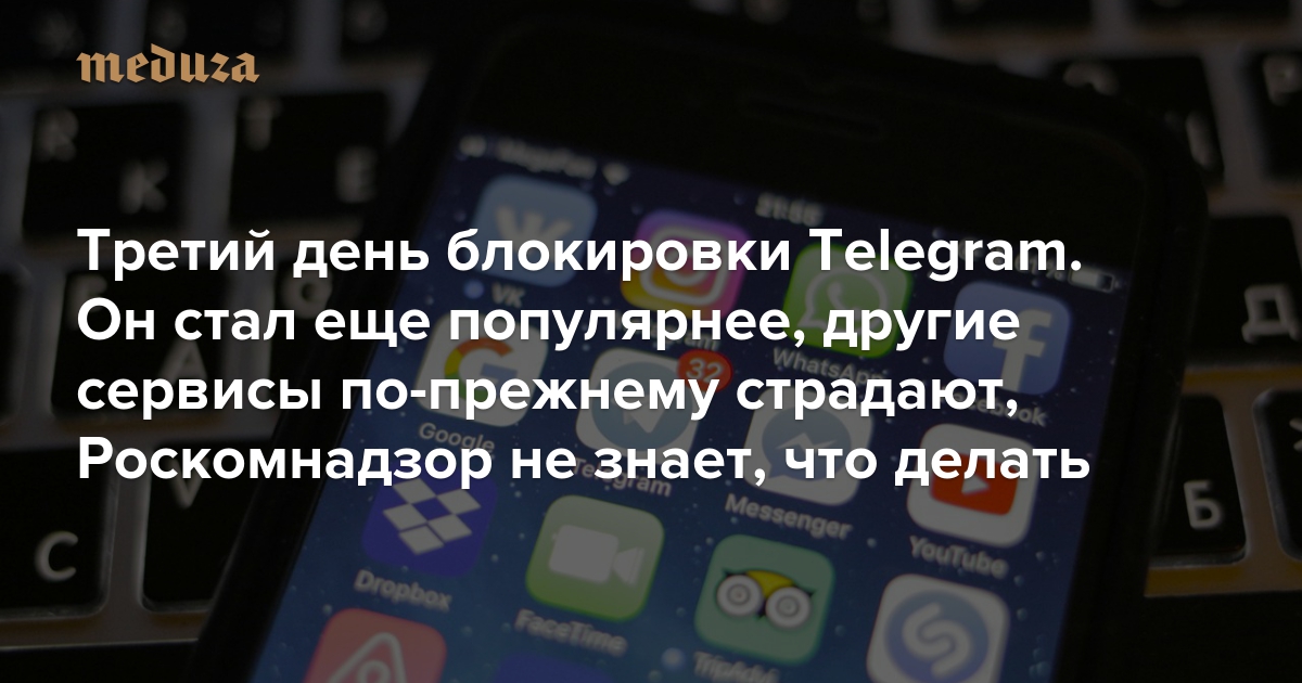 Третий день блокировки Telegram. Он стал еще популярнее, другие сервисы по-прежнему страдают, Роскомнадзор не знает, что делать