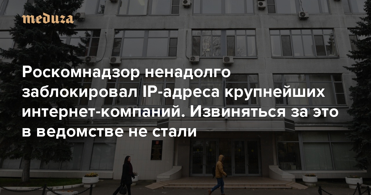 Роскомнадзор ненадолго заблокировал IP-адреса крупнейших интернет-компаний. Извиняться за это в ведомстве не стали