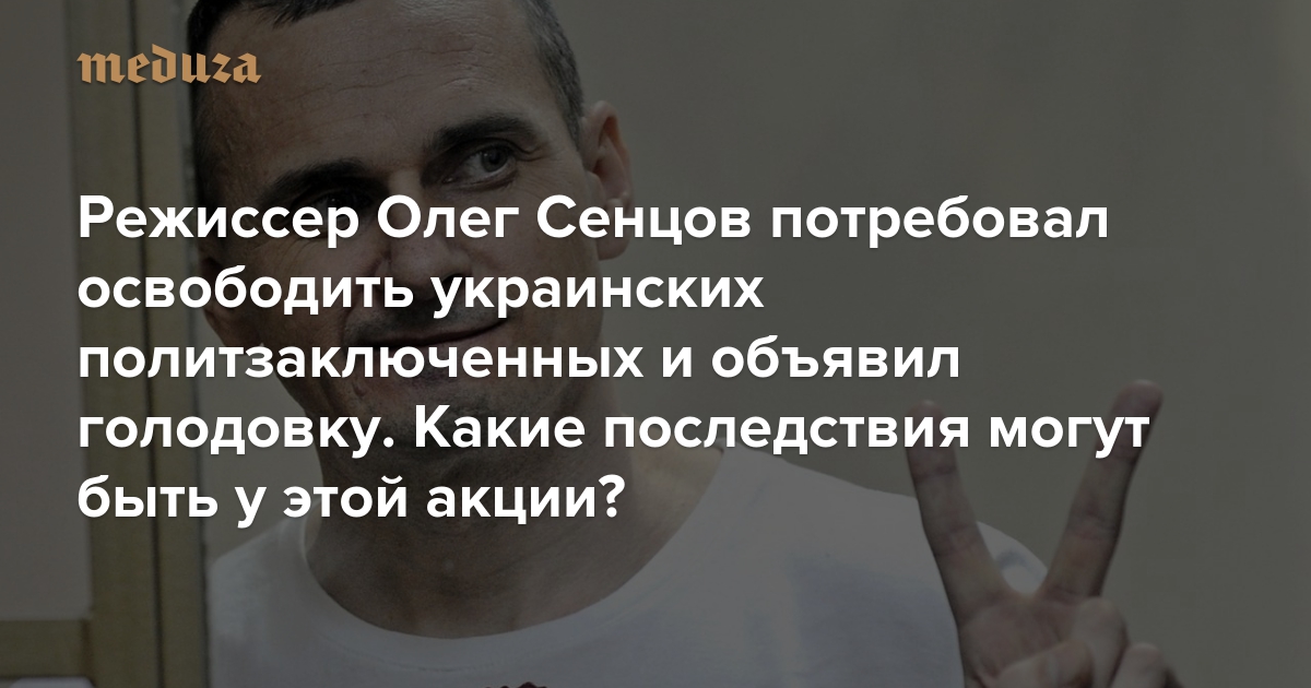 Режиссер Олег Сенцов, отбывающий в России 20-летний тюремный срок по статье о терроризме, 14 мая объявил о голодовке. Через своего адвоката он передал записку, где говорится, что будет голодать до тех пор, пока Россия не отпустит всех украинских политзаключенных (МИД Украины считает политзаключенными 64 граждан своей страны, находящихся в заключении в РФ). «Медуза» рассказывает, какими могут быть последствия этой акции.