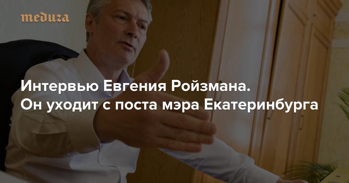 Утром 22 мая за полчаса до начала заседания Екатеринбургской думы ее председатель, избранный в 2013 году мэр города Евгений Ройзман, обнаружил, что в повестку дня внесен пункт об изменениях в городской устав. В уставе собирались написать, что прямых выборов мэра в Екатеринбурге больше не будет: такой закон 3 апреля 2018-го приняла дума Свердловской области. Ройзман отказался включать этот вопрос в повестку дня и закрыл заседание гордумы, едва его начав. Он заявил, что отмена прямых выборов мэра «противоречит интересам Екатеринбурга, интересам жителей и является прямым обманом людей», — и подал в отставку. Свое решение чуть позже он назвал экспромтом. Корреспондент «Медузы» Евгений Берг поговорил с Евгением Ройзманом.