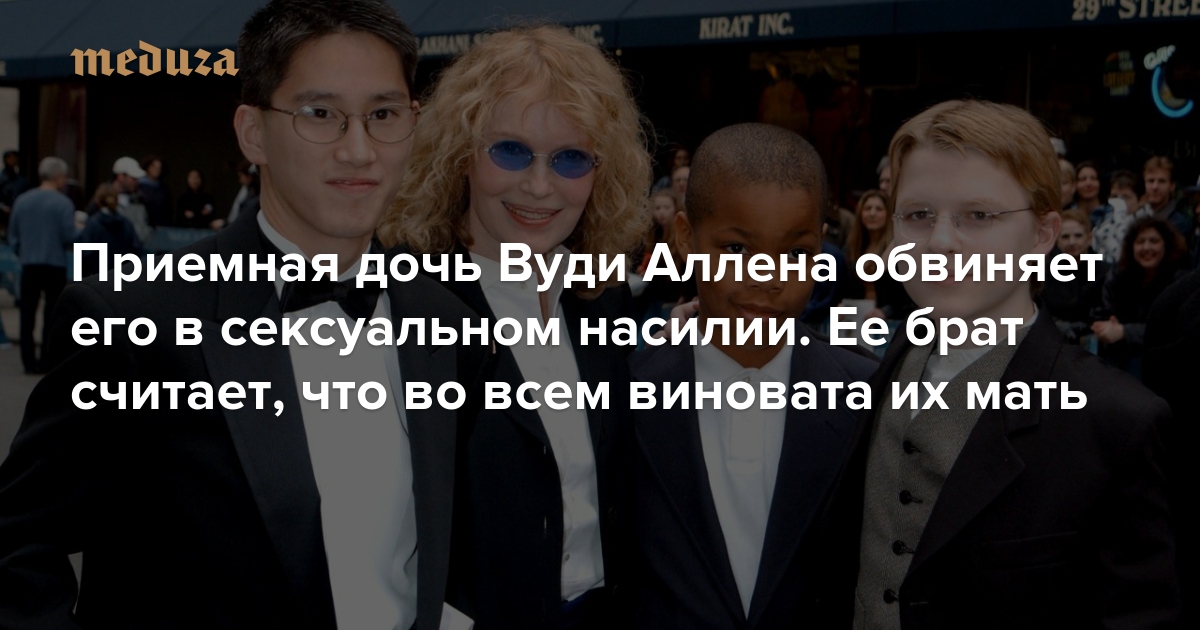 23 мая приемный сын актрисы Миа Фэрроу и режиссера Вуди Аллена Мозес Фэрроу опубликовал в личном блоге пост, где поддержал приемного отца. В 1992 году Миа Фэрроу обвинила режиссера Вуди Аллена в сексуальном насилии над их общей приемной дочерью, семилетней Дилан. Дело не дошло до суда: обвинитель и приемная мать решили, что судебный процесс будет слишком травматичным для девочки. В 2014 году Дилан Фэрроу написала колонку, в которой впервые публично обвинила Аллена в насилии. Через три года она напомнила о своих обвинениях в адрес режиссера и упрекнула Голливуд в бездействии. Аллен отрицает, что приставал к Дилан; Мозес Фэрроу тоже считает, что режиссер невиновен, и утверждает, что Миа Фэрроу сама издевалась над детьми и манипулировала ими.