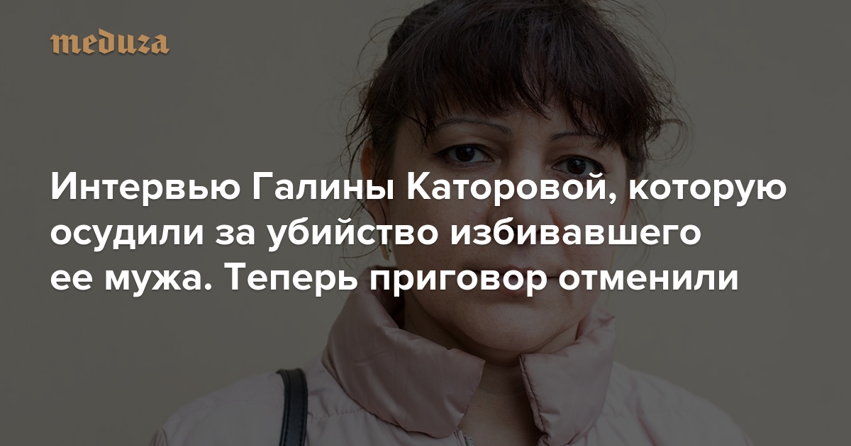 В мае 2018 года Приморский краевой суд оправдал Галину Каторову, которую в феврале приговорили к трем годам колонии за «умышленное причинение тяжкого вреда здоровью». В ночь на 11 марта 2017-го Галина поссорилась со своим мужем Максимом. Тот был пьян, в порыве гнева он попытался задушить жену веревкой (а до этого эпизода несколько раз ее бил). Защищаясь, Каторова схватила нож и нанесла супругу 11 ранений, одно из которых стало смертельным. Против женщины возбудили уголовное дело за умышленное убийство, позже защите удалось переквалифицировать обвинение, а затем — добиться отмены приговора. Спецкор «Медузы» Саша Сулим, подробно писавшая об этом деле, поговорила с Галиной Каторовой.