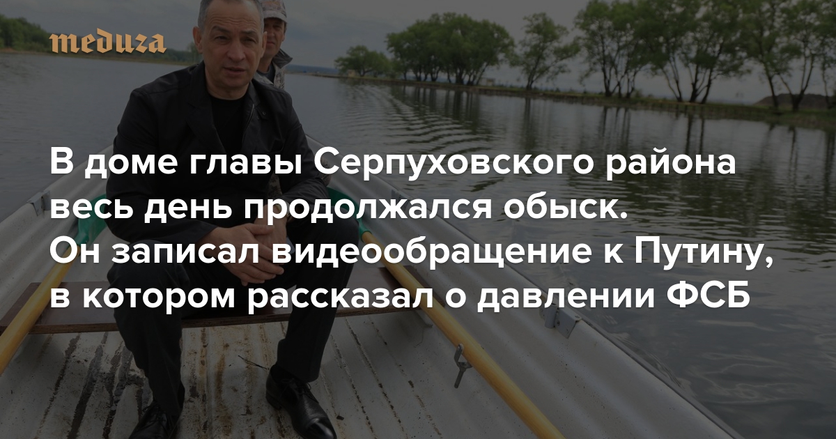 В доме главы Серпуховского района весь день продолжался обыск. Он записал видеообращение к Путину, в котором рассказал о давлении ФСБ
