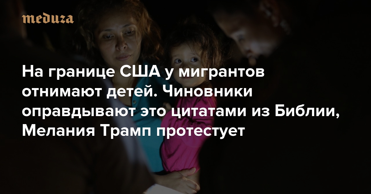 На границе США у мигрантов отнимают детей. Чиновники оправдывают это цитатами из Библии, Мелания Трамп протестует