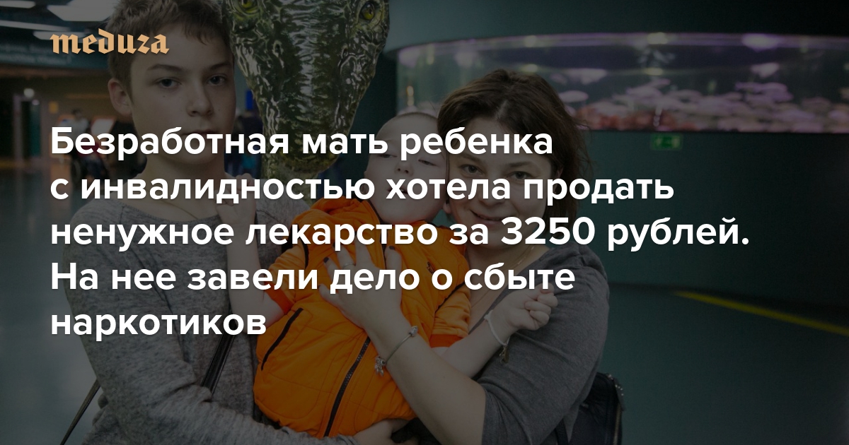 Безработная мать ребенка с инвалидностью хотела продать ненужное лекарство за 3250 рублей. На нее завели дело о сбыте наркотиков