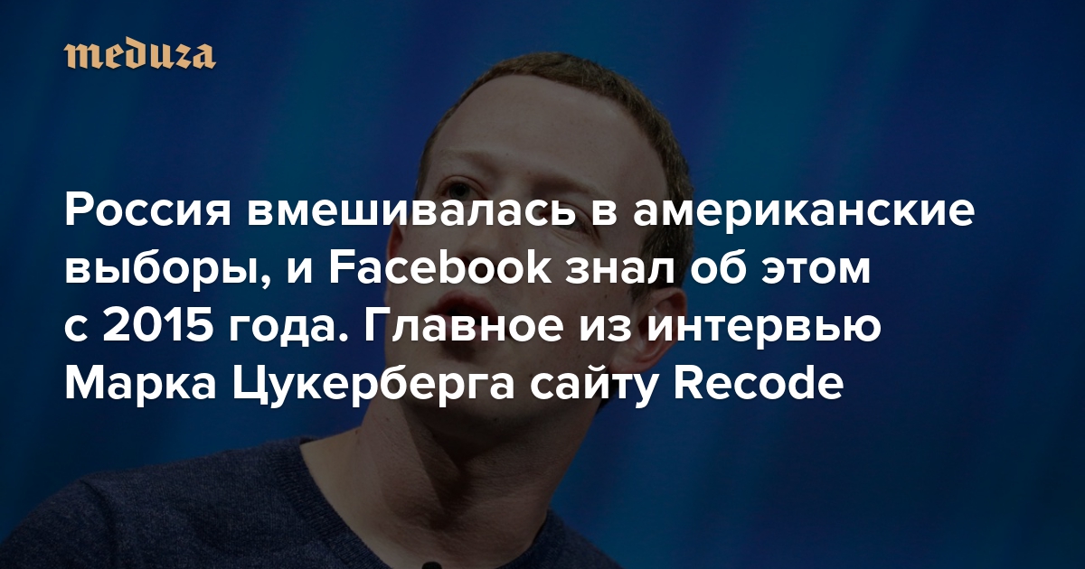Россия вмешивалась в американские выборы, и Facebook знал об этом с 2015 года Главное из интервью Марка Цукерберга сайту Recode