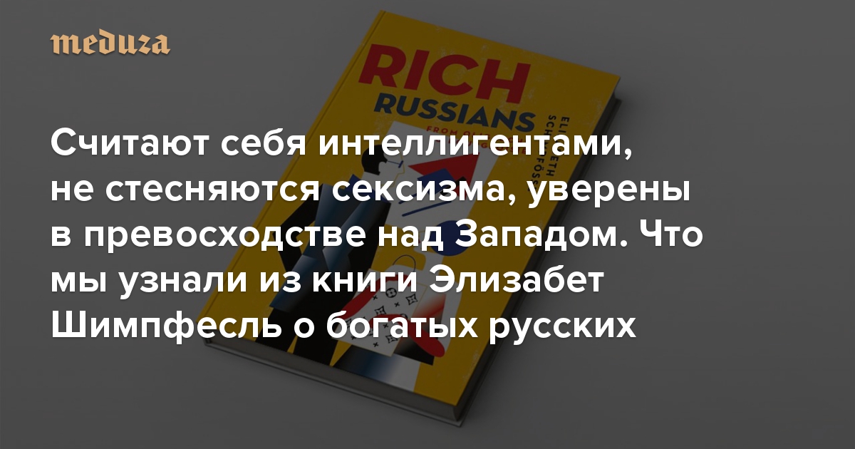Считают себя интеллигентами, не стесняются сексизма, уверены в превосходстве над Западом Что мы узнали из книги Элизабет Шимпфесль «Богатые русские: от олигархов к буржуа»