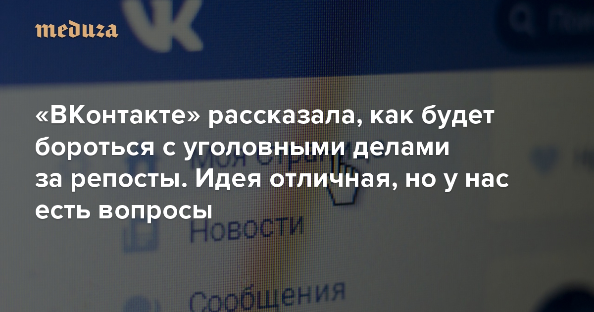 «ВКонтакте» рассказала, как будет бороться с уголовными делами за репосты. Идея отличная, но у нас есть вопросы