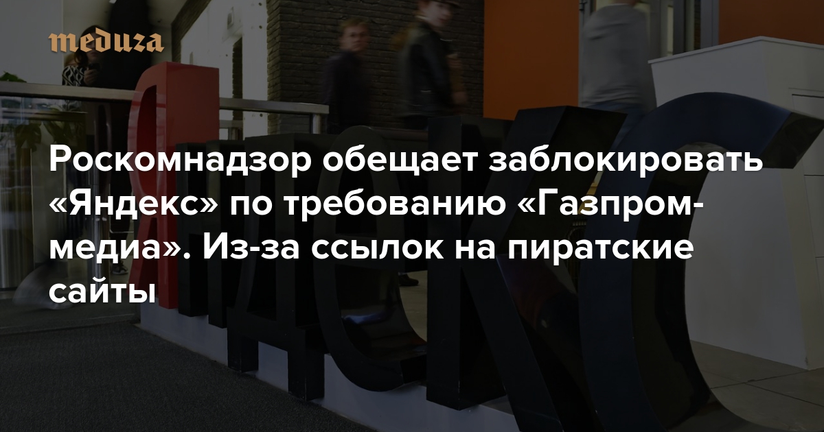 Роскомнадзор обещает заблокировать «Яндекс» по требованию «Газпром-медиа». Из-за ссылок на пиратские сайты