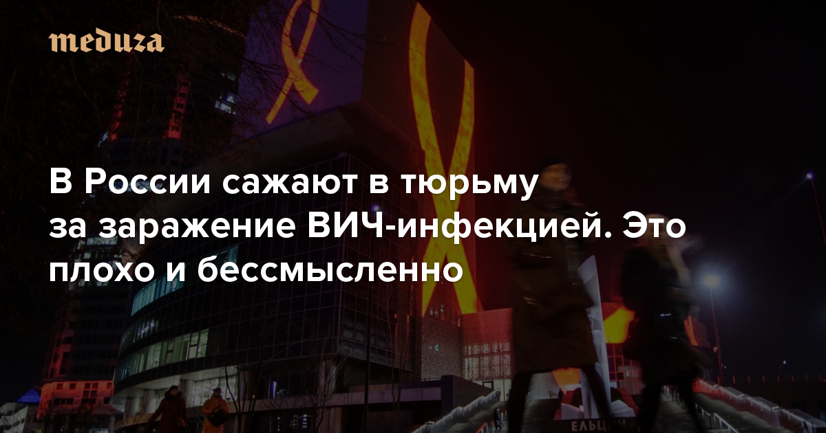 В российском Уголовном кодексе существует специальная статья, предусматривающая ответственность за заражение ВИЧ-инфекцией, — причем получить тюремный срок по ней можно, даже если заражения не произошло, а применяется она в России чаще, чем в любой другой стране мира с аналогичным законодательством. Уголовные наказания за распространение ВИЧ появились еще в начале эпидемии и продолжают применяться во многих странах, хотя Всемирная организация здравоохранения и ООН давно объясняют, что карательные меры не мешают распространению эпидемии, а возможно, и способствуют ей. Специальный корреспондент «Медузы» Евгений Берг выяснил, кого в России сажают по статье за заражение ВИЧ — и почему эта практика не имеет смысла.