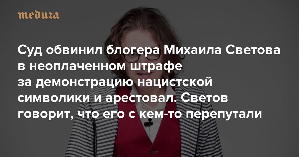 Суд обвинил блогера Михаила Светова в неоплаченном штрафе за демонстрацию нацистской символики и арестовал. Светов говорит, что его с кем-то перепутали