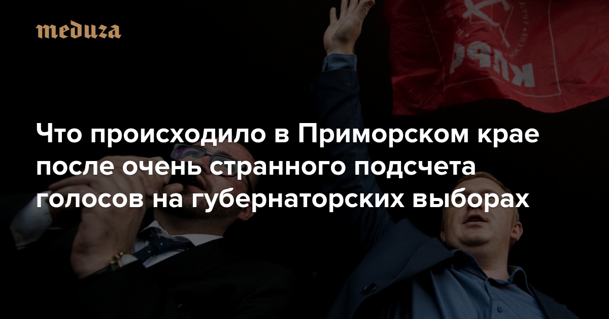 В Приморском крае прошел второй тур губернаторских выборов. После подсчета примерно 98% голосов с отрывом в 5–6% лидировал кандидат от КПРФ Андрей Ищенко, однако после получения данных с последних двух процентов участков впереди оказался врио губернатора от «Единой России» Андрей Тарасенко. Ищенко в знак протеста против «наглых фальсификаций» объявил голодовку. Журналистка издания Newsvl.ru Екатерина Ткаченко по просьбе «Медузы» рассказывает о том, что происходило во Владивостоке утром после подсчета голосов.