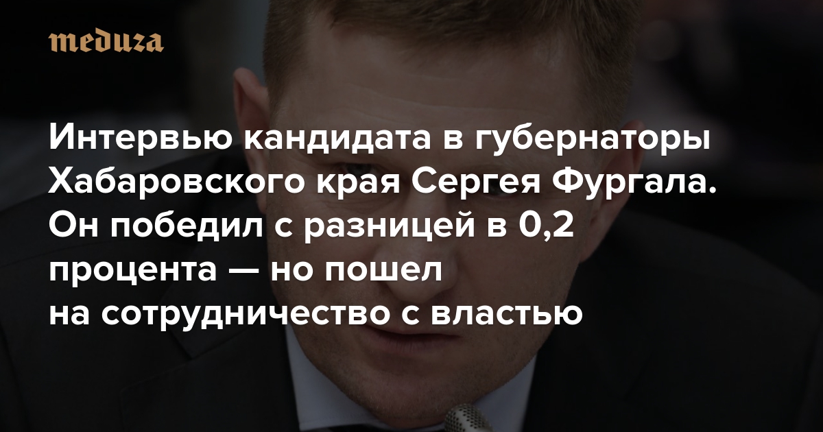 «Ситуация как в Приморье у нас не повторится» Интервью Сергея Фургала. Он победил на выборах в Хабаровском крае с разницей в 0,2 процента — и пошел на сотрудничество с властью