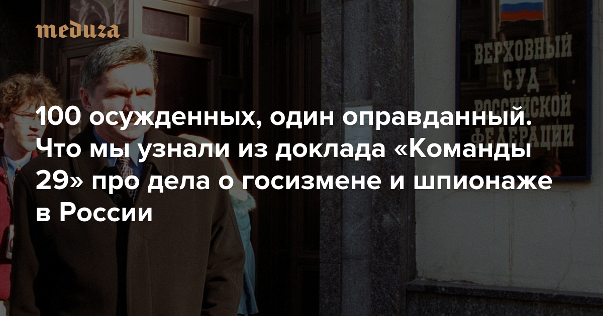 100 осужденных, один оправданный. Что мы узнали из доклада «Команды 29» про дела о госизмене и шпионаже в России