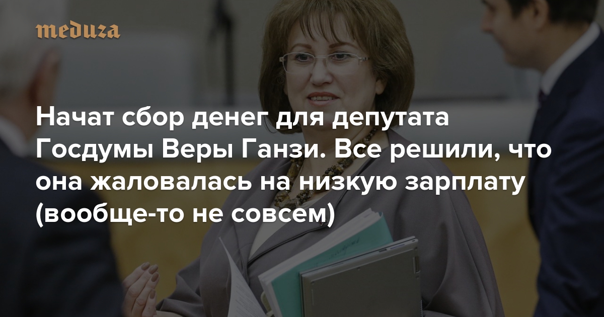 Начат сбор денег для депутата Госдумы Веры Ганзи. Все решили, что она жаловалась на низкую зарплату (вообще-то не совсем)