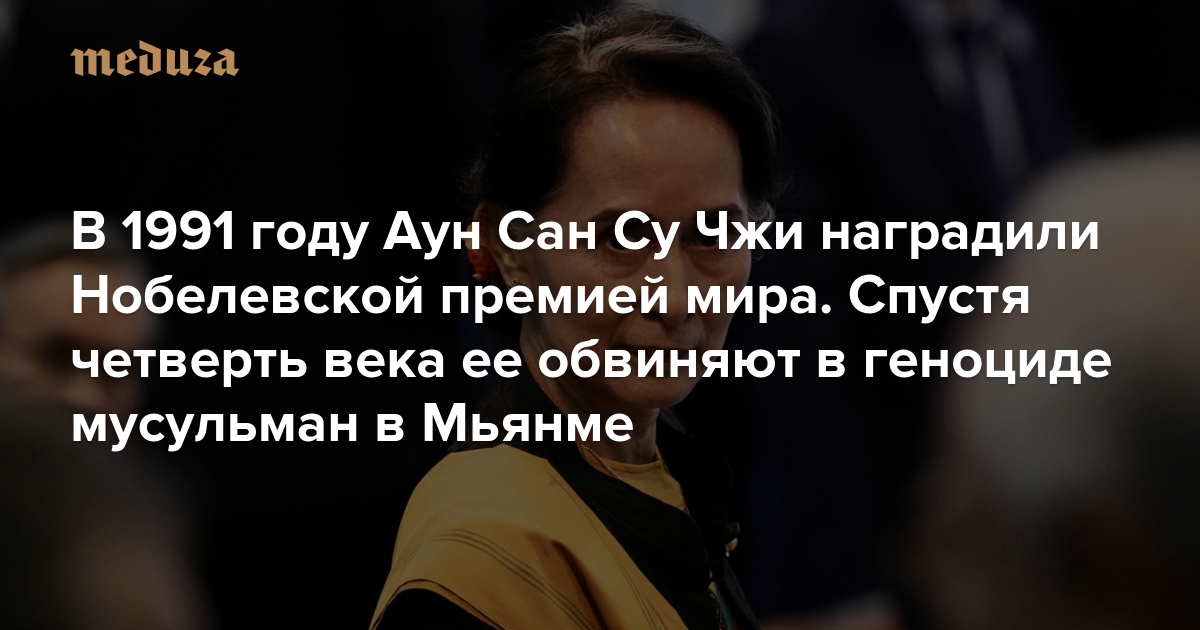 В 1991 году Аун Сан Су Чжи наградили Нобелевской премией мира. Спустя четверть века ее обвиняют в геноциде мусульман в Мьянме