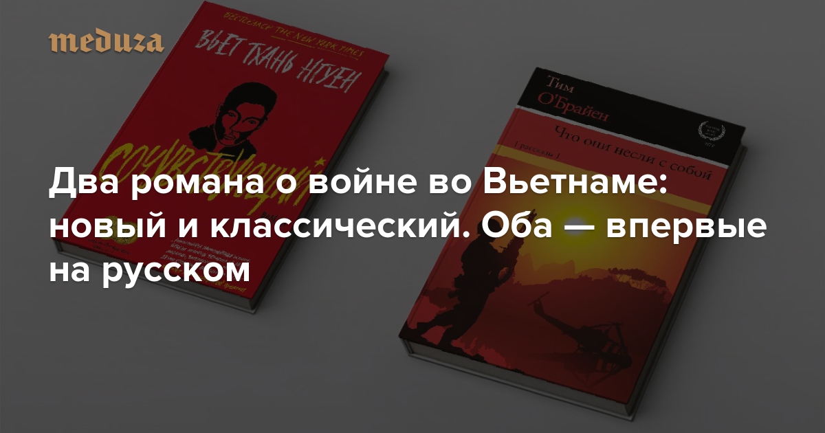 Литературный критик «Медузы» Галина Юзефович рассказывает о двух американских романах про войну во Вьетнаме. Первый — «Сочувствующий» Вьет Тхань Нгуена — написан и переведен совсем недавно, и рассказывает о конфликте с точки зрения вьетнамского офицера-перебежчика. Второй — отчасти автобиографический «Что они несли с собой» Тима ОʼБрайена — был написан еще в 1990 году, а на русском вышел только в 2018-м; в нем война показана глазами юных американских солдат-новобранцев.