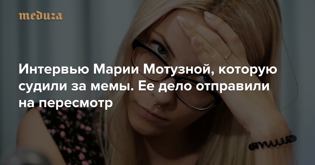 9 октября суд вернул в прокуратуру дело об экстремизме и оскорблении чувств верующих (статьи 282 и 148 УК РФ) жительницы Барнаула Марии Мотузной. Мотузную обвиняли в том, что она сохранила на своей странице в «ВК» картинки, «имеющие лингвистические признаки пропаганды превосходства европеоидной расы над негроидной» и «изображение гуляющего человека, похожего на Иисуса Христа, выпускающего через отверстие в ладони сигаретный дым». Впервые Мотузная рассказала о своем деле в твиттере; именно после ее истории СМИ начали много писать об уголовных делах, заведенных из-за мемов в соцсетях. Теперь о возвращении дела в прокуратуру ходатайствовали обе стороны. Срок давности по «религиозной» статье у Мотузной истечет 15 октября, а «экстремистскую» статью на днях значительно смягчили. Спецкор «Медузы» Саша Сулим поговорила с Марией Мотузной.