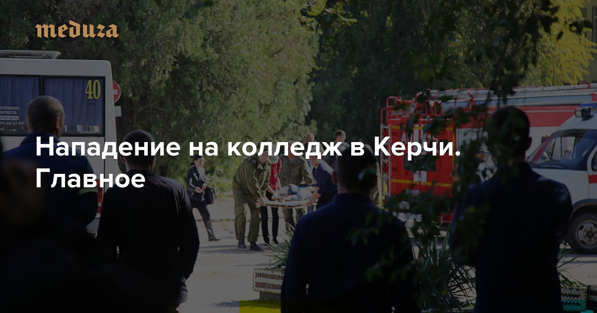 На политехнический колледж в Керчи совершено нападение, погибли 18 человек, большинство из которых — студенты. Еще около 40 человек ранены, шесть из них находятся в тяжелом состоянии. Все пострадавшие доставлены в больницы Керчи. Следственный комитет после первоначального осмотра тел сообщил, что погибшие были застрелены. Директор колледжа Ольга Гребенникова, видео с которой опубликовало издание Kerch.com.ru, рассказала, что неизвестные с оружием открывали кабинеты на втором этаже колледжа и «убивали всех, кого могли найти». Сама Гребенникова, однако, не присутствовала при нападении: незадолго до него она уехала из колледжа. Очевидцы происшествия утверждали, что нападавший был один.