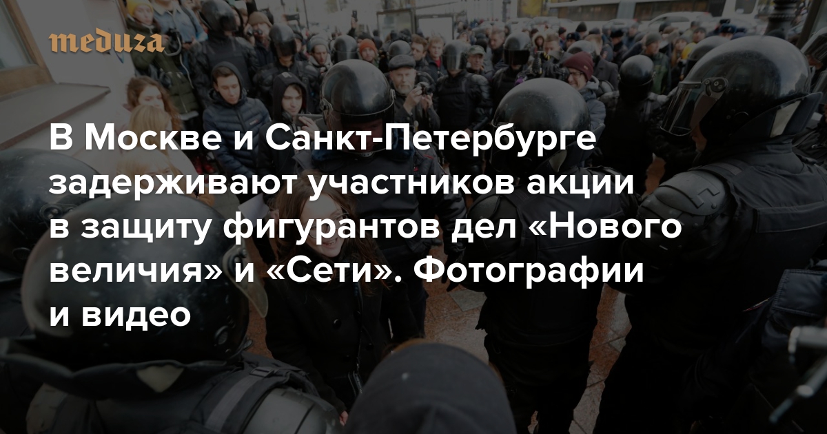 В Москве и Санкт-Петербурге задерживают участников акции в защиту фигурантов дел «Нового величия» и «Сети». Фотографии и видео
