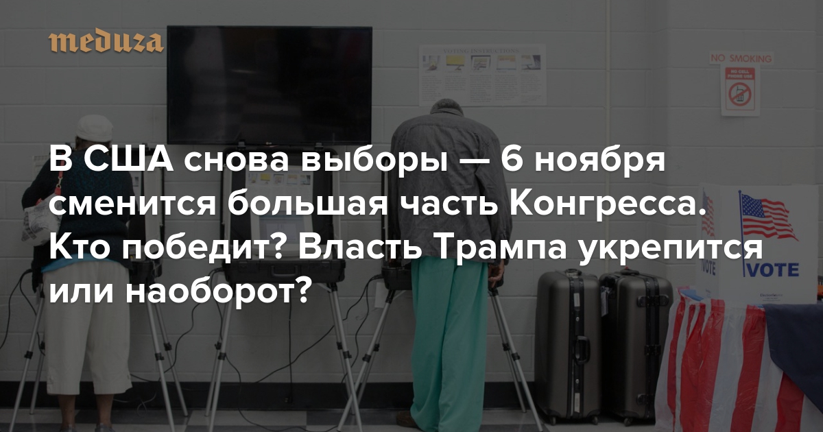 6 ноября в США пройдут промежуточные выборы в Конгресс — будет решаться судьба Палаты представителей и 33 кресел в Сенате. Кроме того, в 36 штатах изберут губернаторов; во многих местах граждане будут голосовать и за местных политиков. Всего, по подсчетам The New York Times, американцы смогут проголосовать за 6665 политиков на уровне штатов. «Медуза» коротко рассказывает, чем важны промежуточные выборы и чего от них ждать.
