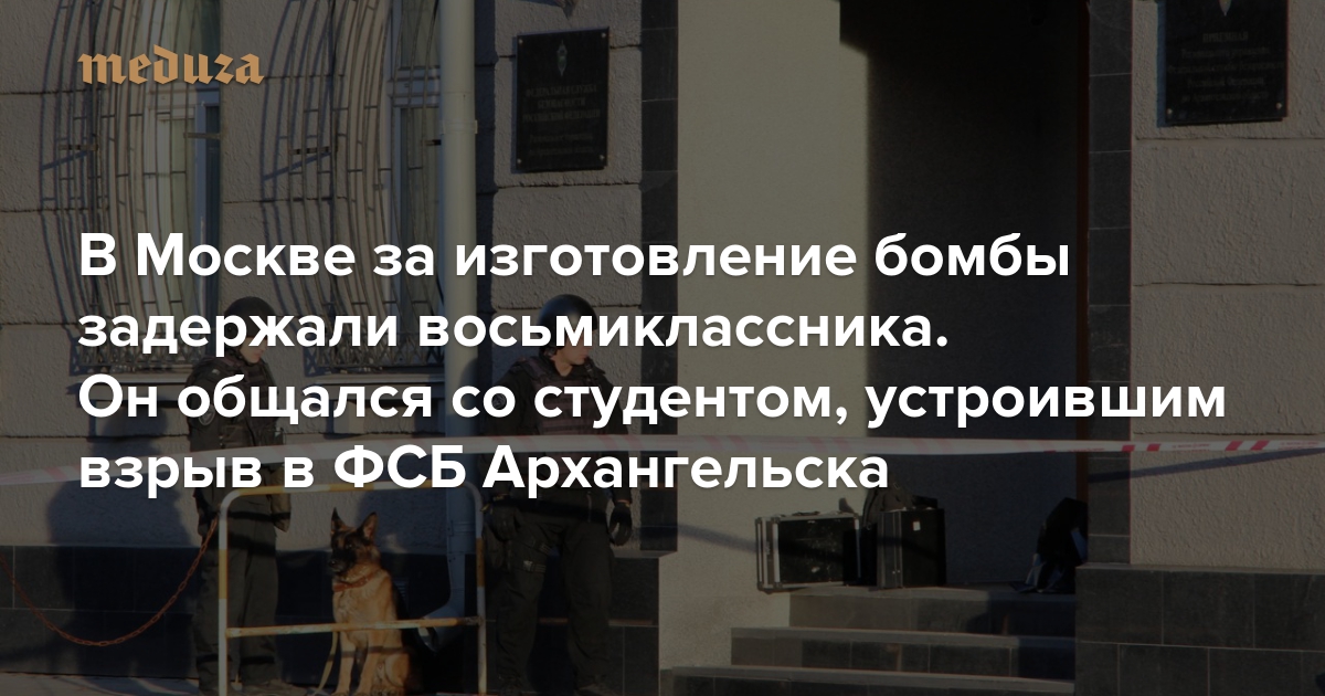 В Москве за изготовление бомбы задержали восьмиклассника. Он общался со студентом, устроившим взрыв в ФСБ Архангельска