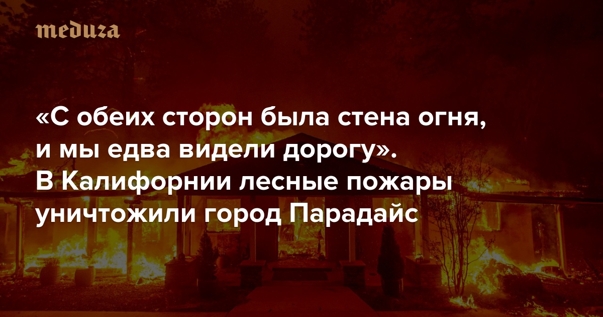 «С обеих сторон была стена огня, и мы едва видели дорогу» В Калифорнии лесные пожары уничтожили город Парадайс