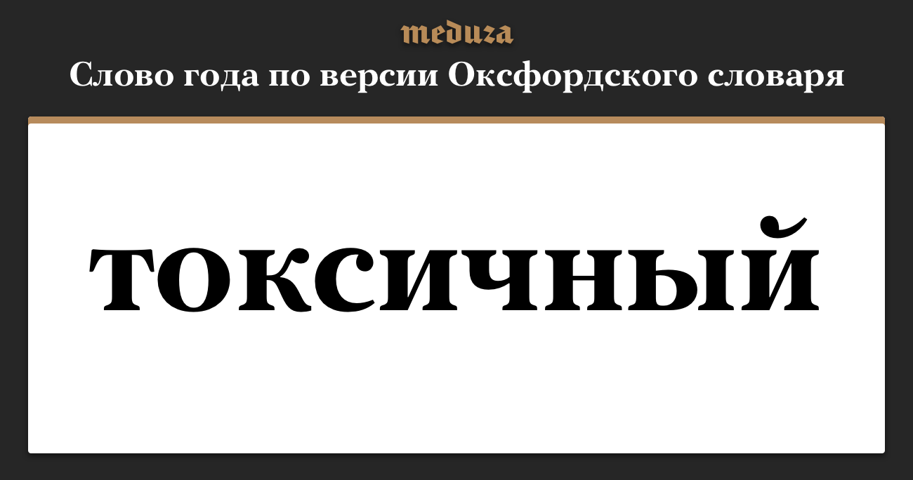 Оксфордский словарь выбрал слово 2018 года — toxic («токсичный»). У него есть прямое значение, происходящее от древнегреческого «токсикон фармакон» — яда, которым смазывали наконечники стрел, — но сейчас слово «токсичный» стало употребляться все чаще и в других значениях.