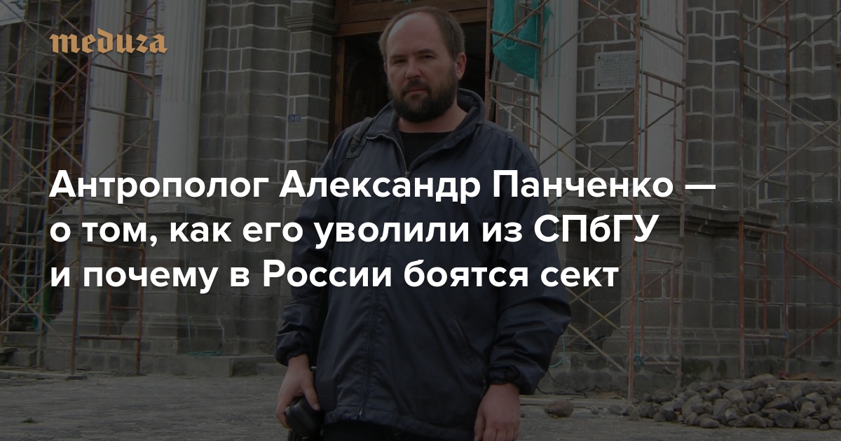 3 декабря фольклорист и антрополог, доктор филологических наук Александр Панченко рассказал в фейсбуке о своем увольнении из Санкт-Петербургского государственного университета. По его словам, в августе 2018 года ректорат убрал его из списка преподавателей без объяснения причин. Сам Панченко связывает увольнение с написанной им экспертизой по судебному делу против представителей одной из церквей пятидесятников, которая «существенно поколебала позиции обвинения» (Панченко — один из главных в России специалистов, изучающих народное православие и русские мистические секты). «Медуза» поговорила с Панченко об обстоятельствах его увольнения и о том, почему российское государство борется с религиозными движениями.
