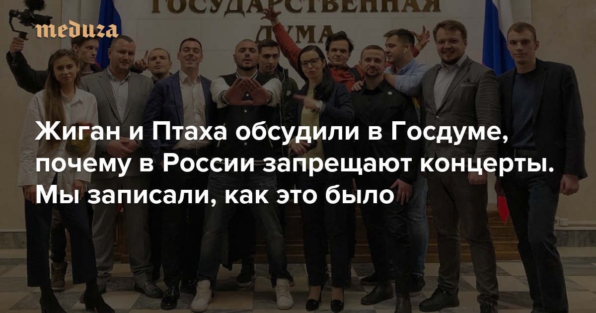«Другие рэперы говорят, что мы идем к вам на поклон, а для нас это — зашкварно» Жиган и Птаха обсудили в Госдуме, почему в России запрещают концерты. Мы записали, как это было