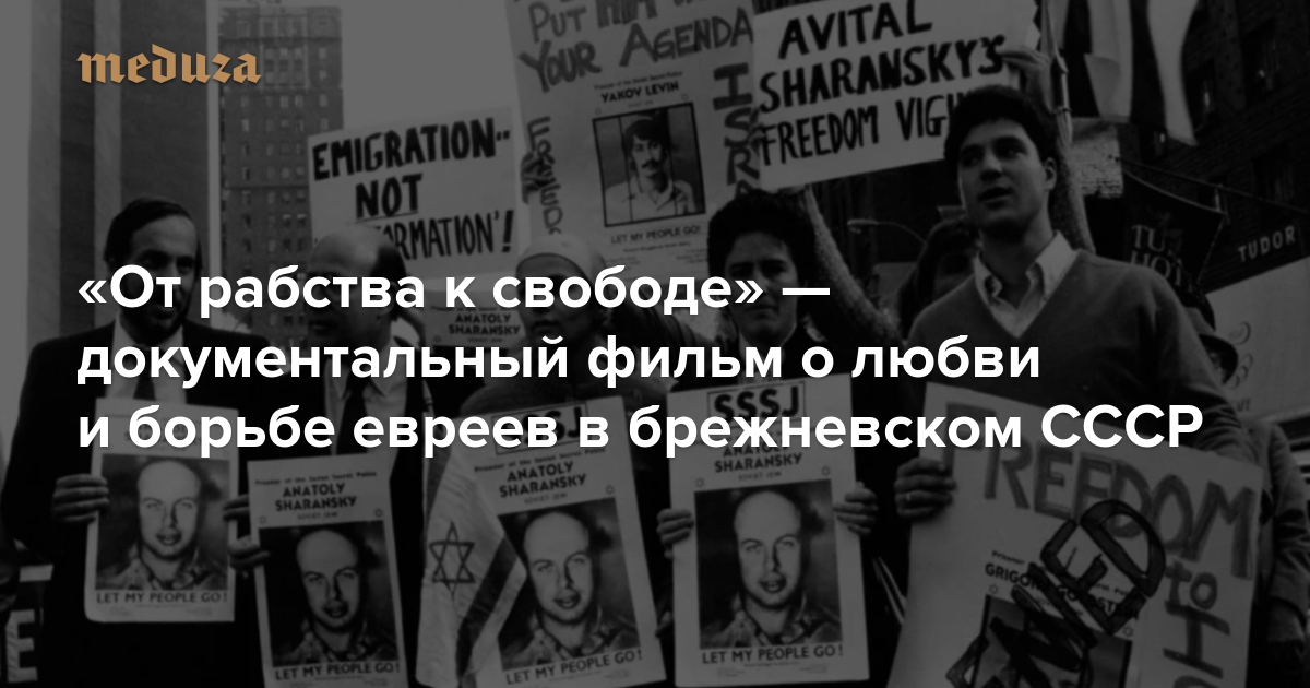 С 6 по 12 декабря в Москве и Санкт-Петербурге пройдет Международный фестиваль документального кино «Артдокфест» (в Риге он состоялся в конце октября). Всего на фестивале представлено более 60 фильмов. 10 декабря на фестивале покажут картину Аркадия Когана «От рабства к свободе», посвященную советским диссидентам Натану (Анатолию) и Авиталь (Наталье) Щаранским и их репатриации в Израиль. Журналист «Медузы» Дмитрий Карцев рассказывает, на каком историческом фоне разворачивались события фильма и как сложилась жизнь его героев.