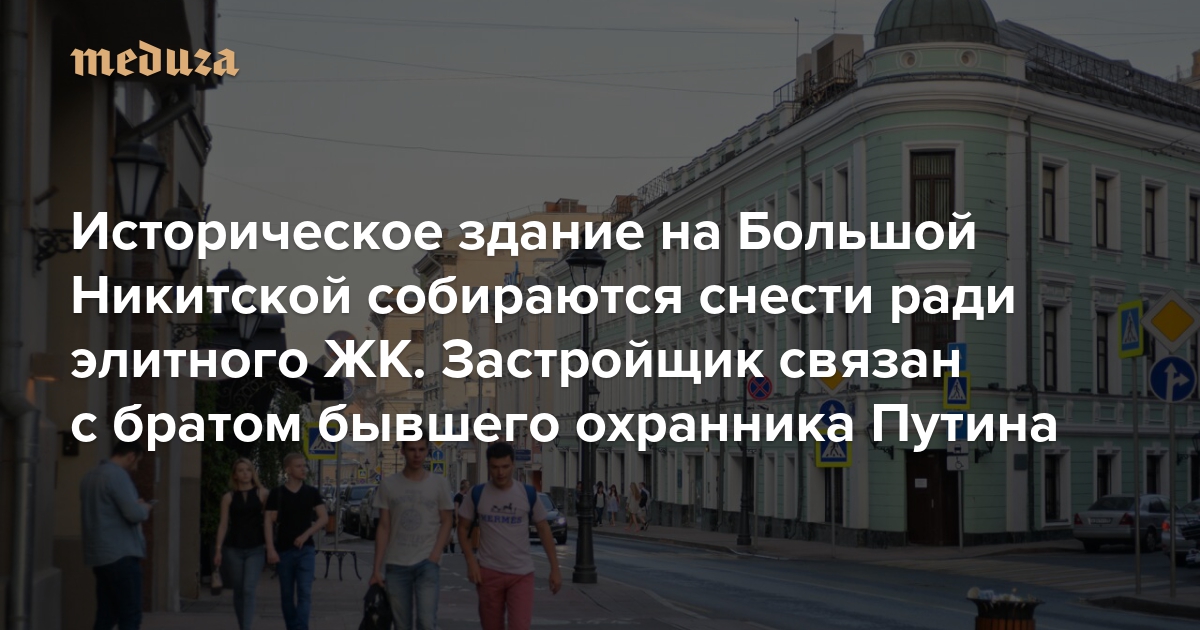 Историческое здание на Большой Никитской собираются снести ради элитного ЖК. Застройщик связан с братом бывшего охранника Путина
