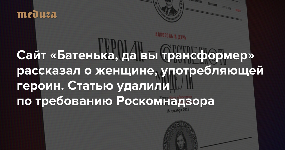 Сайт «Батенька, да вы трансформер» рассказал о женщине, употребляющей героин. Статью удалили по требованию Роскомнадзора