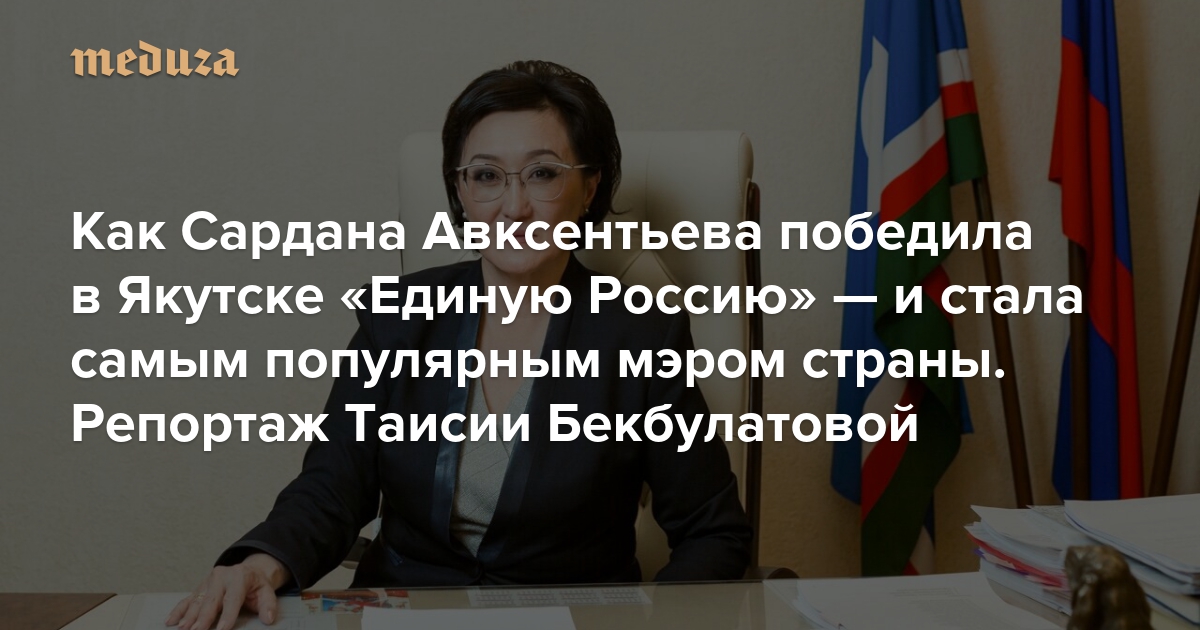 На выборах 9 сентября 2018 года Якутск стал единственной региональной столицей, где мэром был избран представитель оппозиции. 48-летняя Сардана Авксентьева обошла единоросса Александра Саввинова, поддержанного губернатором, и стала первой женщиной-градоначальником в истории города. После избрания Авксентьева развернула бурную деятельность, направленную на исполнение «народного заказа»: принялась сокращать расходы на городской аппарат; увольнять сомнительных чиновников и подрядчиков; распродавать записанные на мэрию дорогие машины. В результате Авксентьева стала общероссийской знаменитостью — а успехами якутской мэрии в интернете даже заинтересовались в администрации президента. Спецкор «Медузы» Таисия Бекбулатова отправилась в Якутск, чтобы понять, как Авксентьевой удалось победить и какое будущее ее ждет.