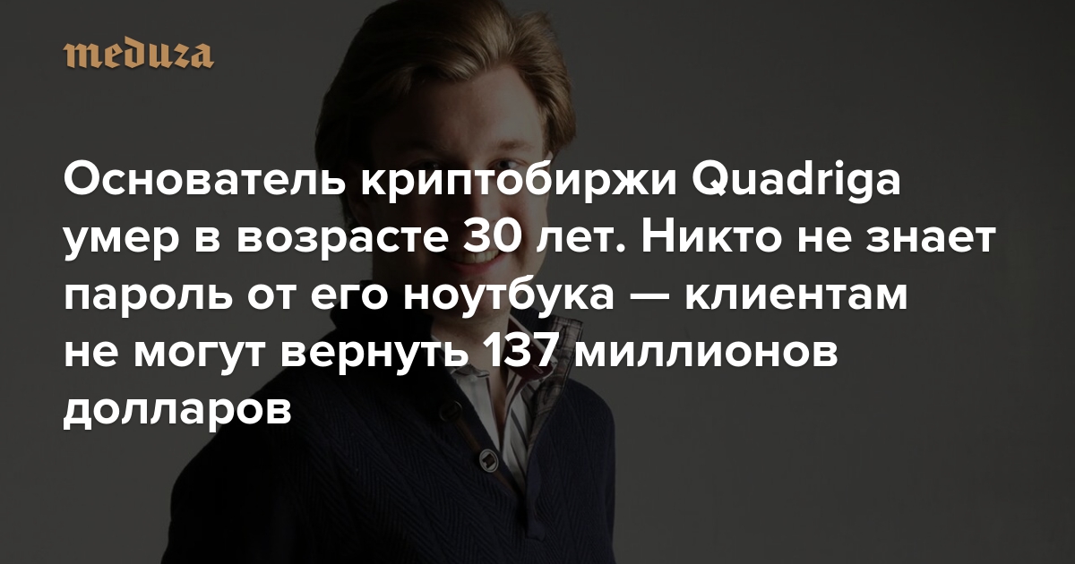Основатель криптобиржи Quadriga умер в возрасте 30 лет. Никто не знает пароль от его ноутбука — клиентам не могут вернуть 137 миллионов долларов
