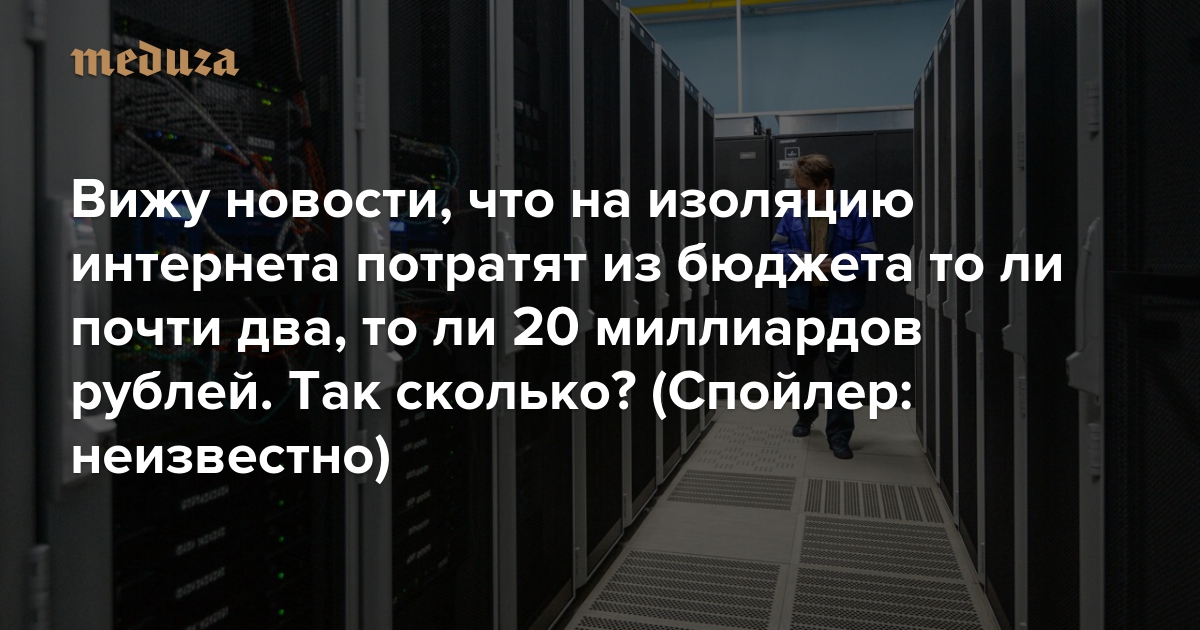Вижу новости, что на изоляцию интернета потратят из бюджета то ли почти два, то ли 20 миллиардов рублей. Так сколько? (Спойлер: неизвестно)