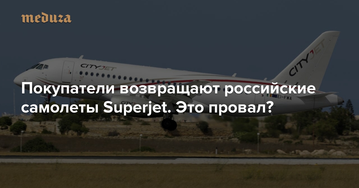 Ирландская авиакомпания CityJet, как сообщила газета «Ведомости», отказалась от эксплуатации российских самолетов Superjet SSJ100 производства компании «Сухой». Ирландцы, которые выполняли на SSJ100 рейсы для бельгийского авиаперевозчика Brussels Airlines, единственными в Европе использовали эти самолеты. Сама по себе потеря одного из эксплуатантов для «Сухого» некритична: у CityJet было семь SSJ100, тогда как всего поставлено заказчикам 148 самолетов. Однако репутации проекта, который называли «началом возрождения российского авиастроения», уже нанесен серьезный урон. «Медуза» разобралась, чем российский самолет не нравится заказчикам и можно ли считать проект SSJ100 провалом.