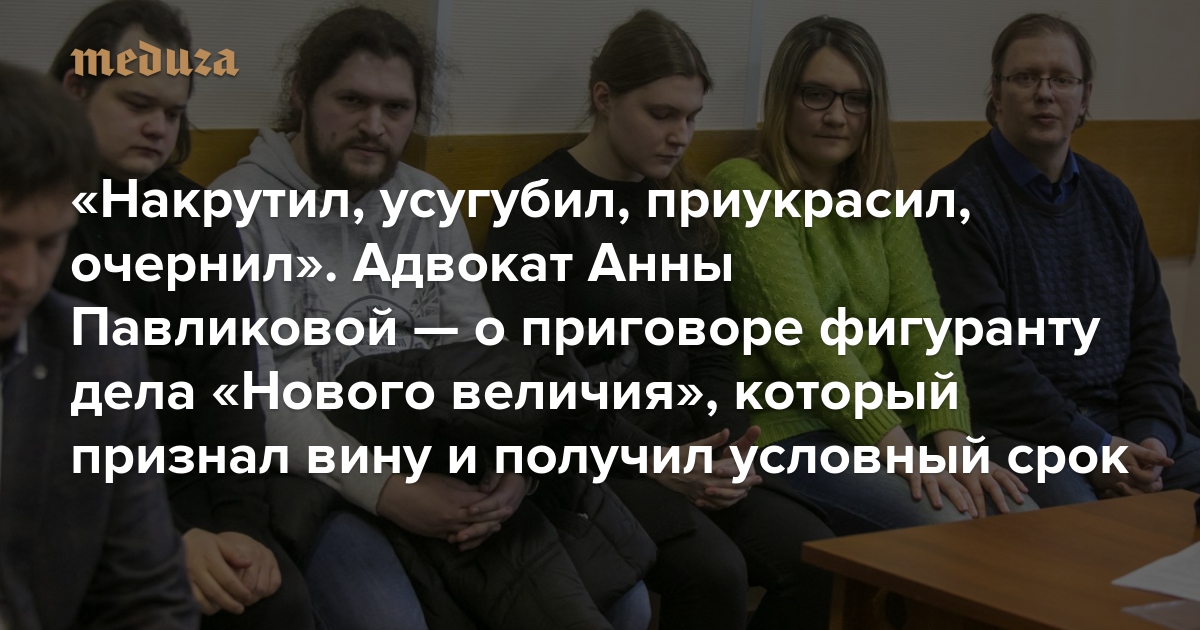 «Накрутил, усугубил, приукрасил, очернил» Адвокат Анны Павликовой — о приговоре фигуранту дела «Нового величия», который признал вину и получил условный срок
