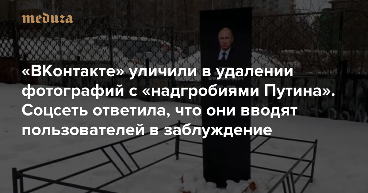 «ВКонтакте» уличили в удалении фотографий с «надгробиями Путина». Соцсеть ответила, что они вводят пользователей в заблуждение