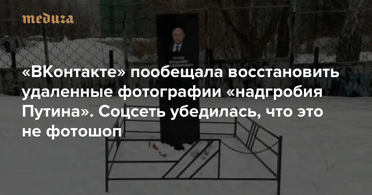 «ВКонтакте» пообещала восстановить удаленные фотографии «надгробия Путина». Соцсеть убедилась, что это не фотошоп
