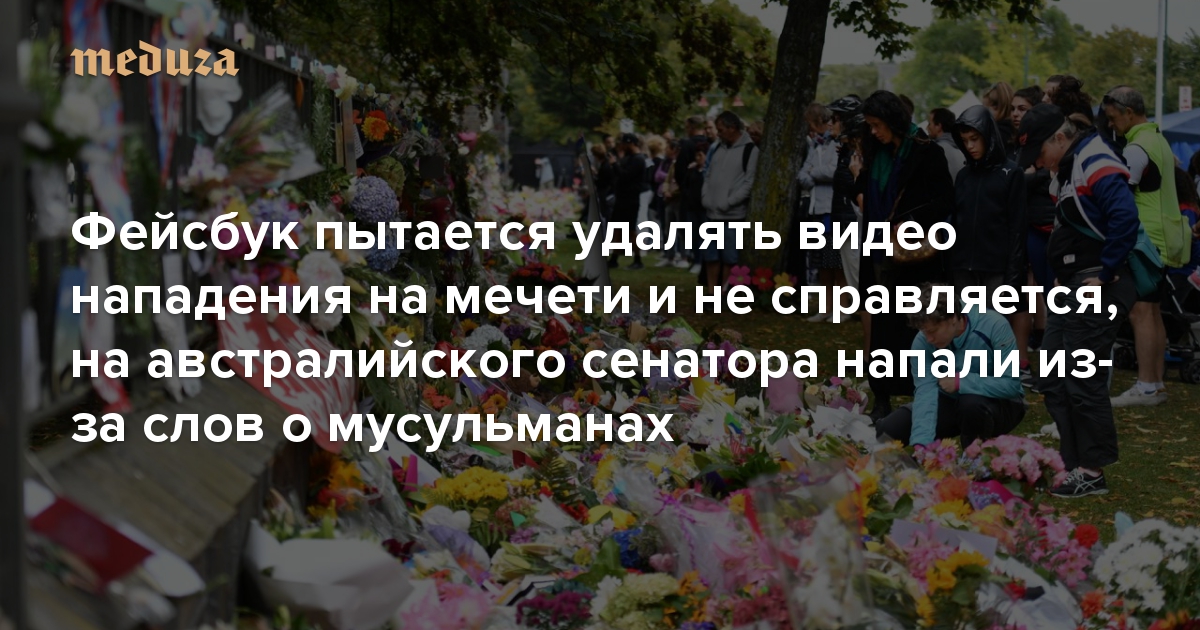 Что происходит после теракта в Новой Зеландии Фейсбук пытается удалять видео нападения на мечети и не справляется, на австралийского сенатора напали из-за слов о мусульманах