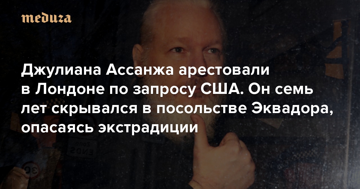 Джулиана Ассанжа арестовали в Лондоне по запросу США. Он семь лет скрывался в посольстве Эквадора, опасаясь экстрадиции