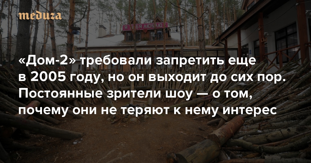 11 мая 2004 года на канале «ТНТ» вышел первый выпуск шоу «Дом-2». Его ведущими в разное время были Ксения Собчак, Ксения Бородина, Ольга Бузова. Еще в 2005 году реалити-шоу требовали закрыть за то, что оно наносит «вред нравственному развитию молодежи», но «Дом-2» выходит до сих пор. «Медуза» спросила у постоянных зрителей шоу, почему они не теряют к нему интерес.