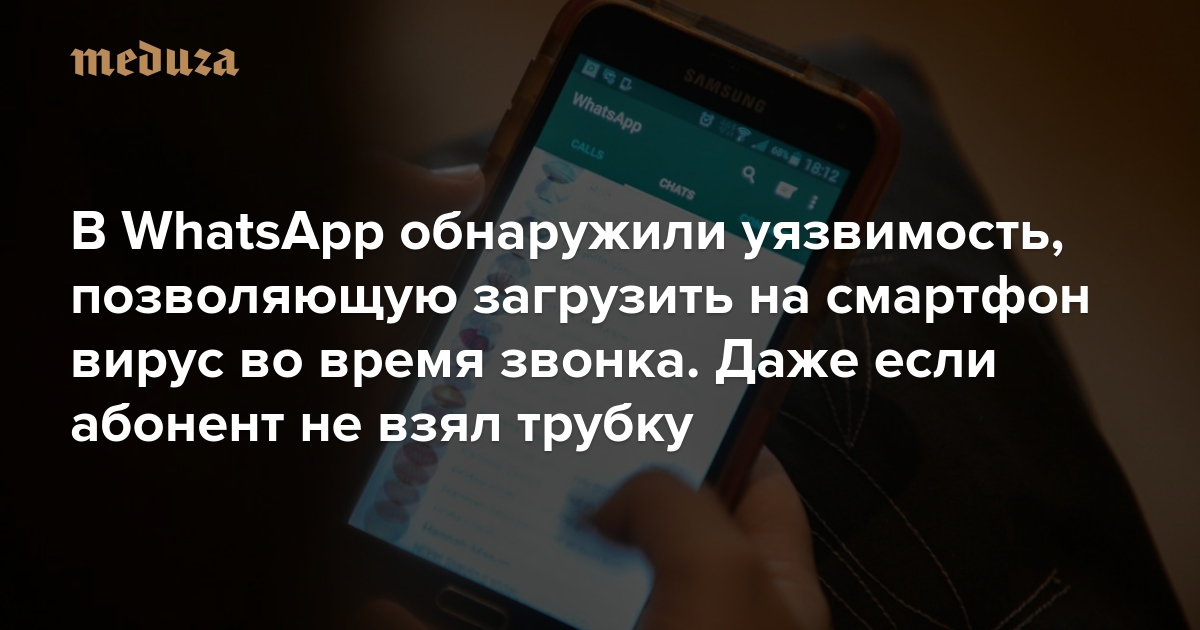 В WhatsApp обнаружили уязвимость, позволяющую загрузить на смартфон вирус во время звонка. Даже если абонент не взял трубку