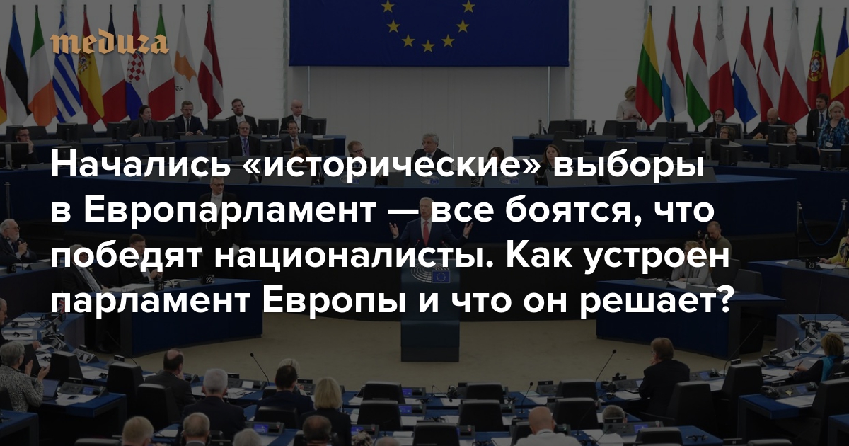В Европе в эти выходные проходят выборы в Европейский парламент. Несмотря на то что полномочия этого органа не так уж велики, голосование уже называют одним из самых важных в истории Евросоюза. «Медуза» рассказывает, как устроен Европарламент, какие решения он принимает, почему в него часто проходит много националистов и евроскептиков и как будет на этот раз.