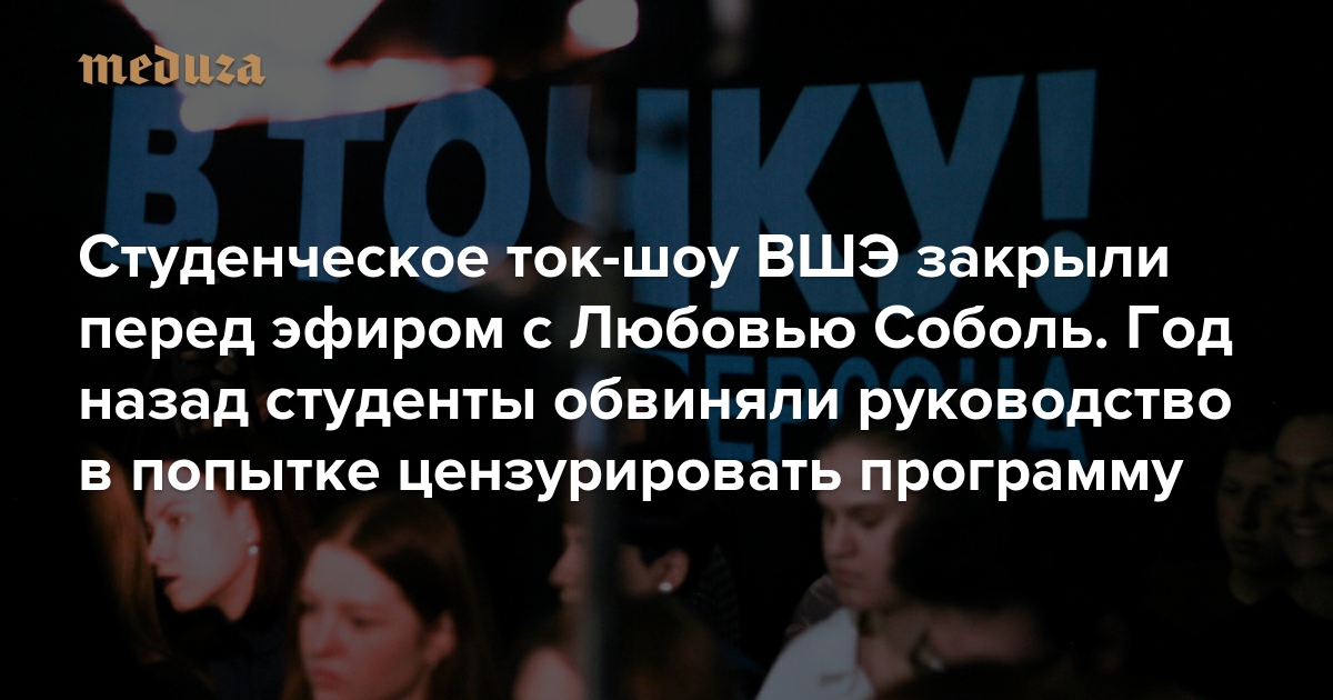 Студенческое ток-шоу ВШЭ закрыли перед эфиром с Любовью Соболь. Год назад студенты обвиняли руководство в попытке цензурировать программу