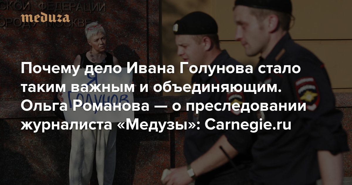 Почему дело Ивана Голунова стало таким важным и объединяющим Ольга Романова — о преследовании журналиста «Медузы»: Carnegie.ru