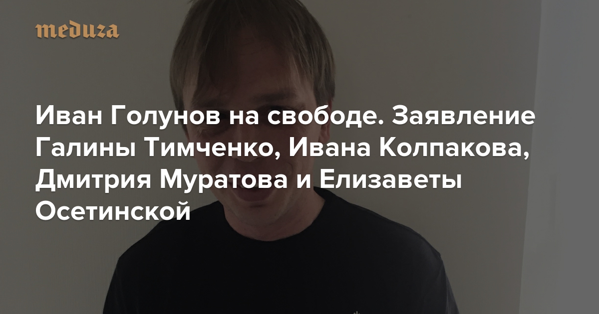 Иван Голунов на свободе Заявление Галины Тимченко, Ивана Колпакова, Дмитрия Муратова, Елизаветы Осетинской и Сергея Бадамшина