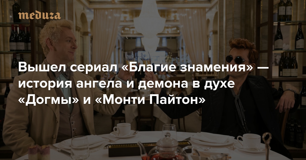 На Amazon вышел комедийный мини-сериал «Благие знамения» — экранизация романа Терри Пратчетта и Нила Геймана. В главных ролях — Майкл Шин («Фрост против Никсона»), Дэвид Теннант («Доктор Кто») и Джон Хэмм («Безумцы»). Голоса за кадром — Фрэнсис Макдорманд и Бенедикт Камбербэтч. Кинокритик Егор Москвитин объясняет, почему экранизация романа сравнима со скетчами «Монти Пайтон».