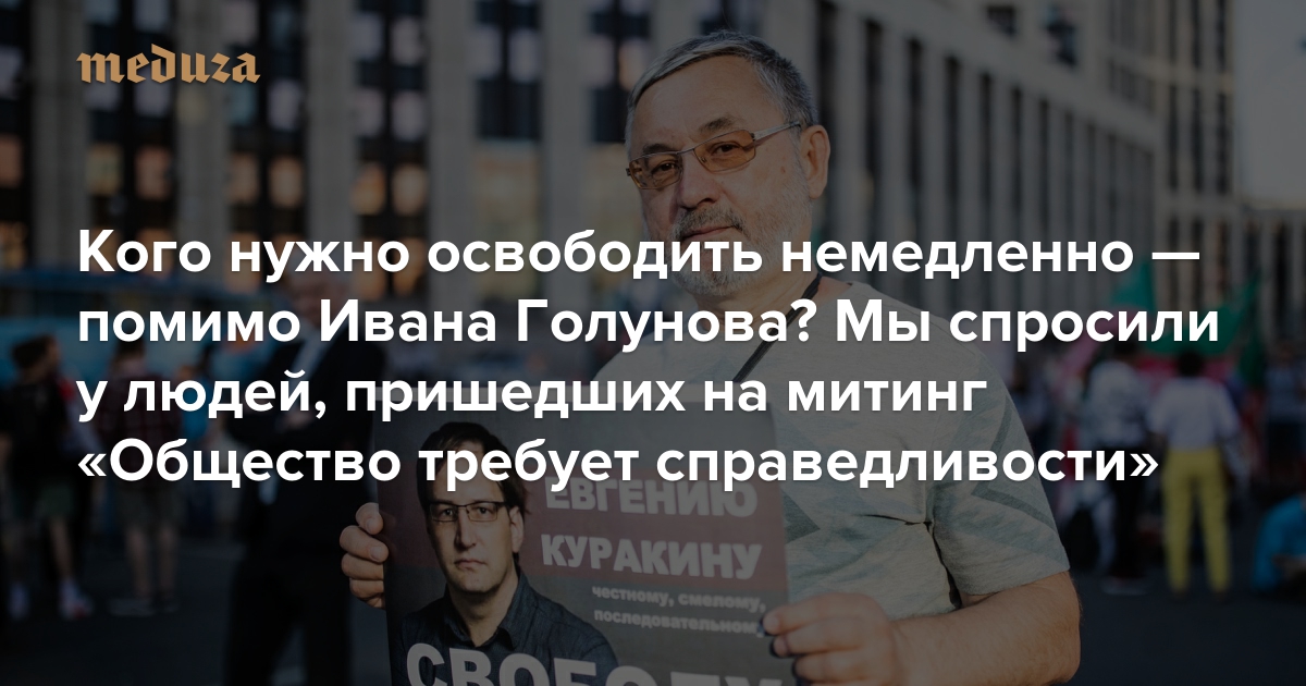 Кого нужно освободить немедленно — помимо Ивана Голунова? Мы спросили у людей, пришедших на митинг «Общество требует справедливости»